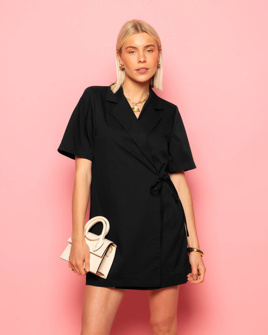 ZOEY WRAP UP SHORT SLEEVE BLAZER DRESS ZWART