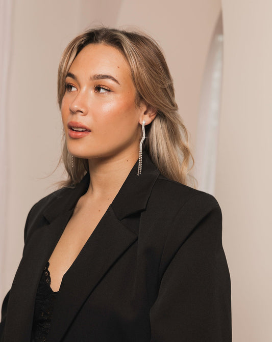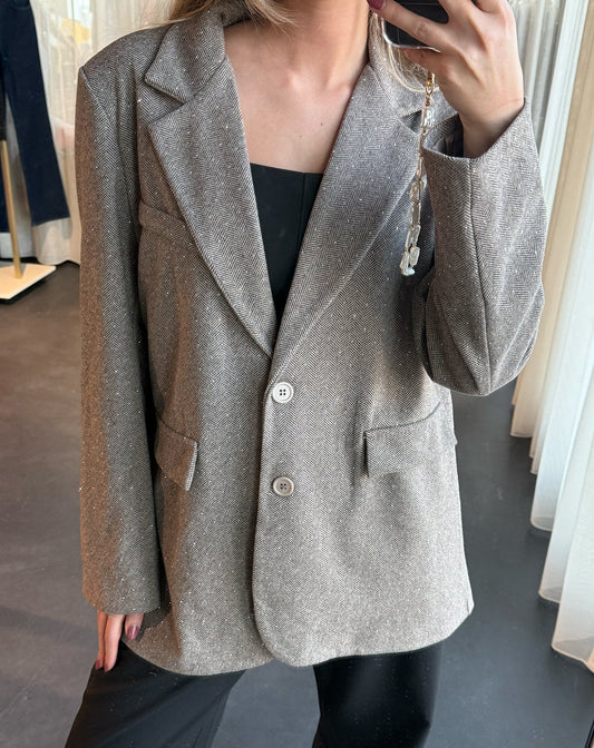 DIAMOND STUDS HERRINGBONE WRAP BACK BLAZER BRUIN