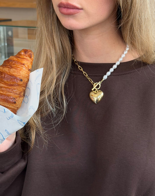 Übergroßer Vivre La Vie Kapuzenpullover – Stein
