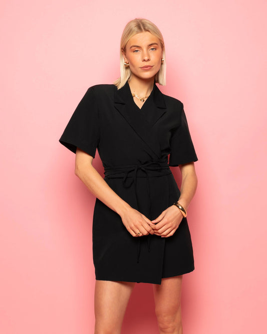 SADIE SHORT SLEEVE BLAZER DRESS ZWART