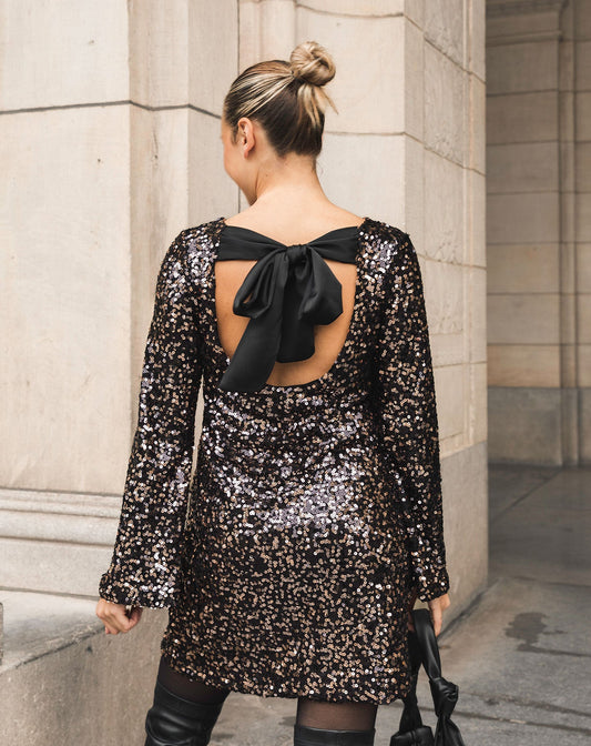 SEQUIN BOW DRESS ZWART