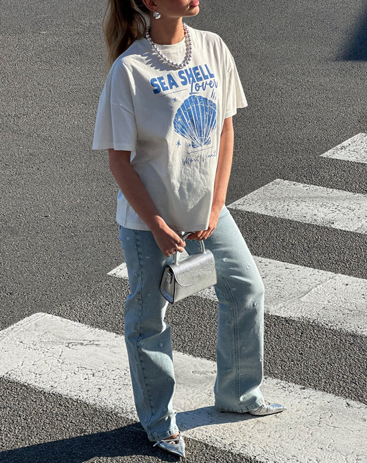 SHELL STUD STRAIGHT LEG JEANS LICHTBLAUW