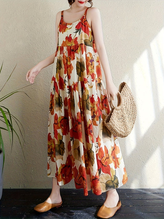 Sheryl | Zomerse Maxi Jurk met Bloemenprint en Spaghettibandjes