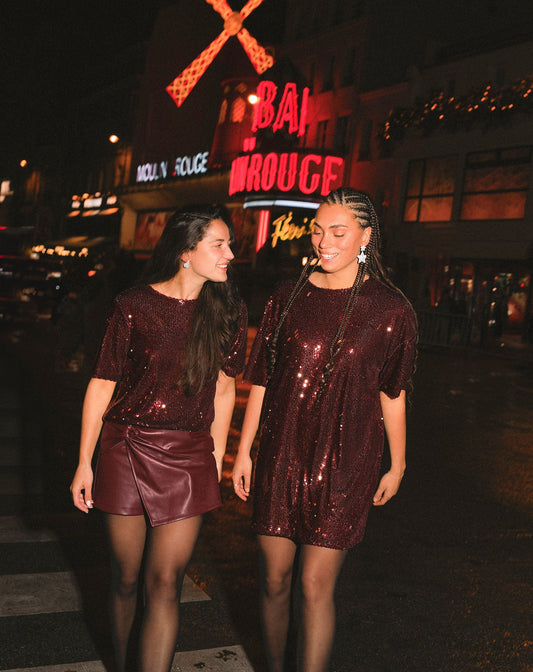SOPHIE LIQUID LEATHER SKORT BURGUNDY