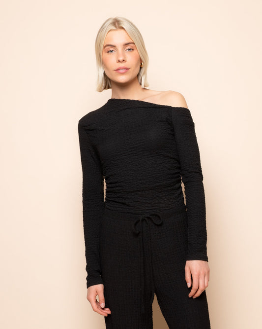 STRUCTURE OFF SHOULDER RUCHED TOP ZWART