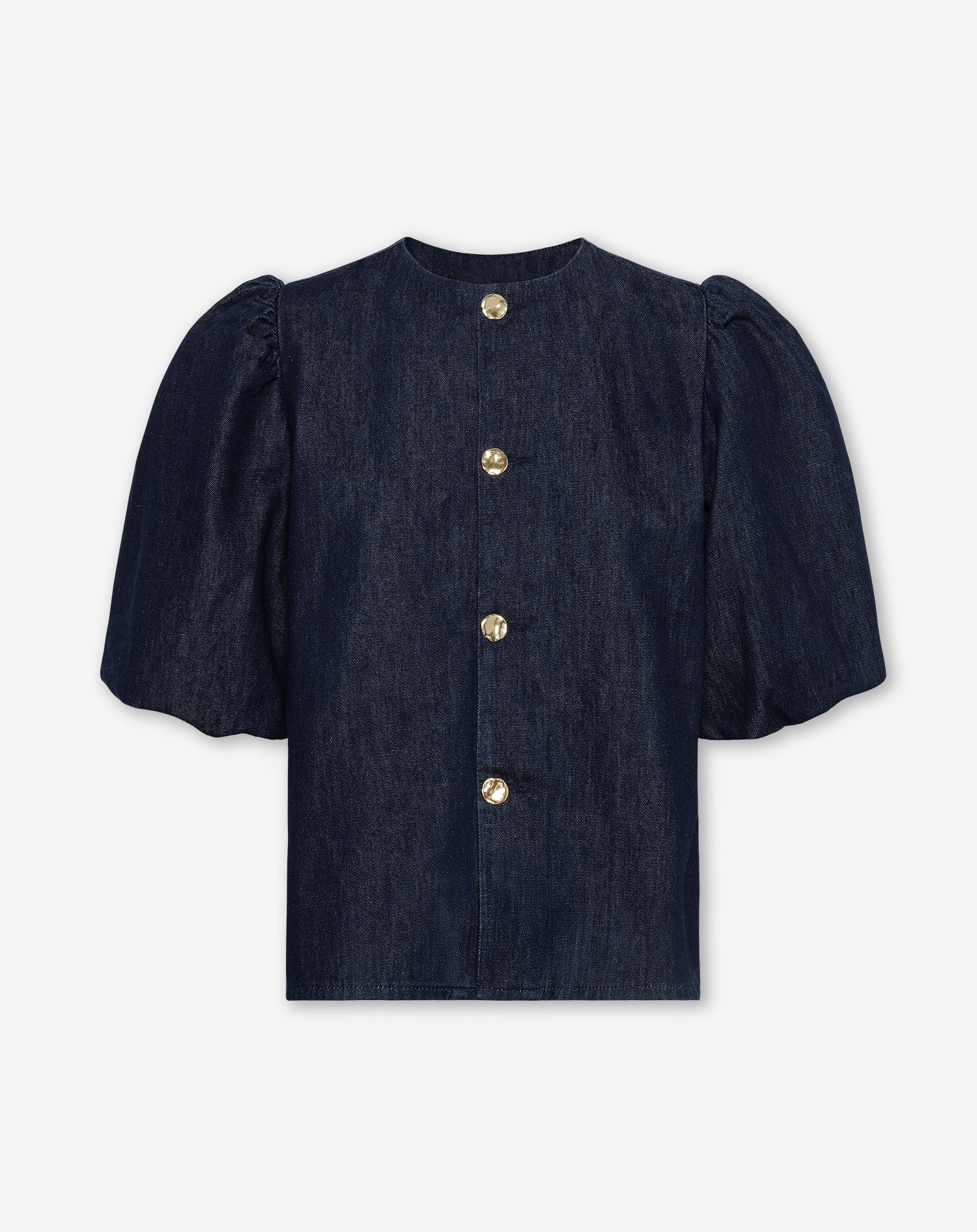 DENIM PUFF SLEEVE BLOUSE DONKERBLAUW