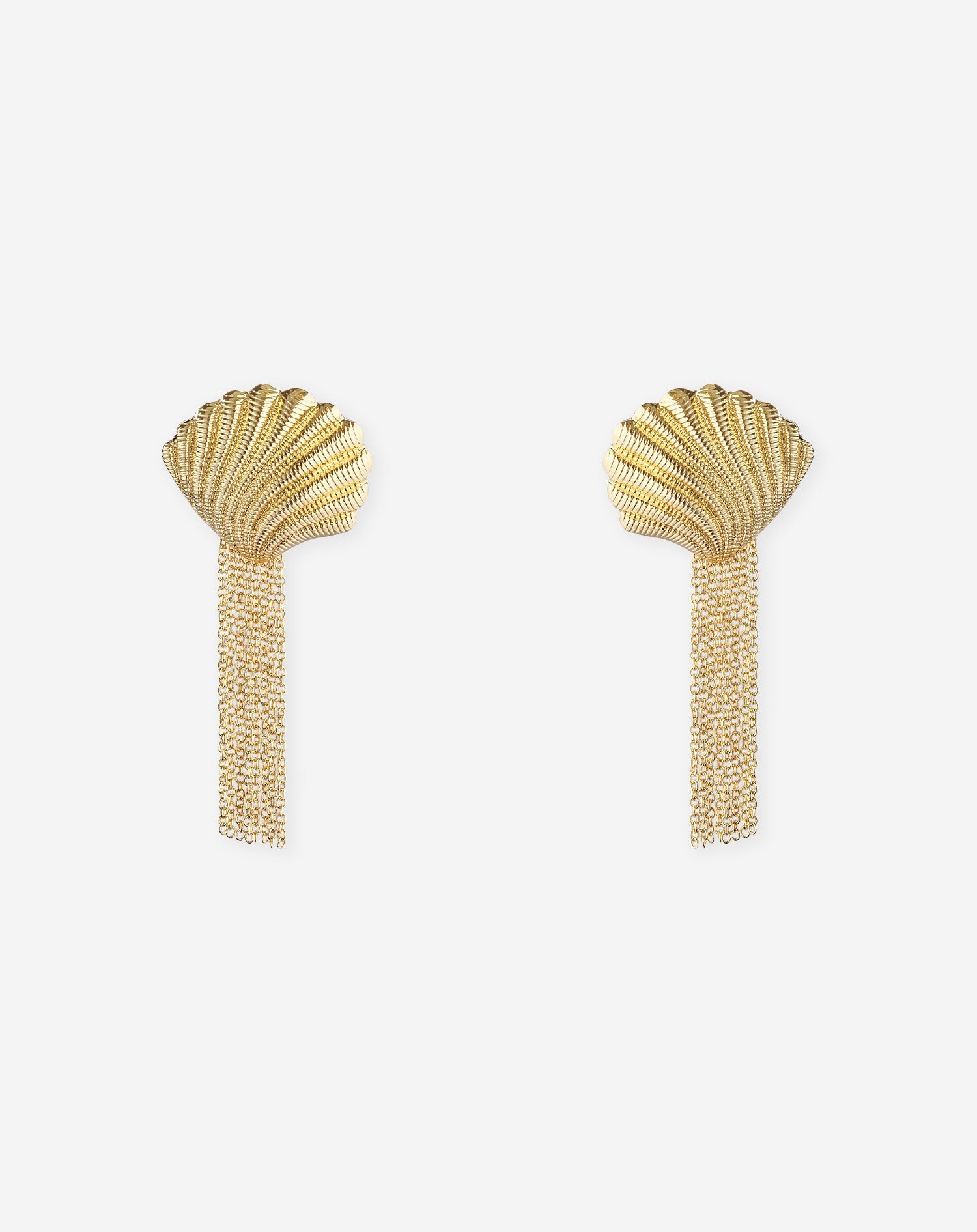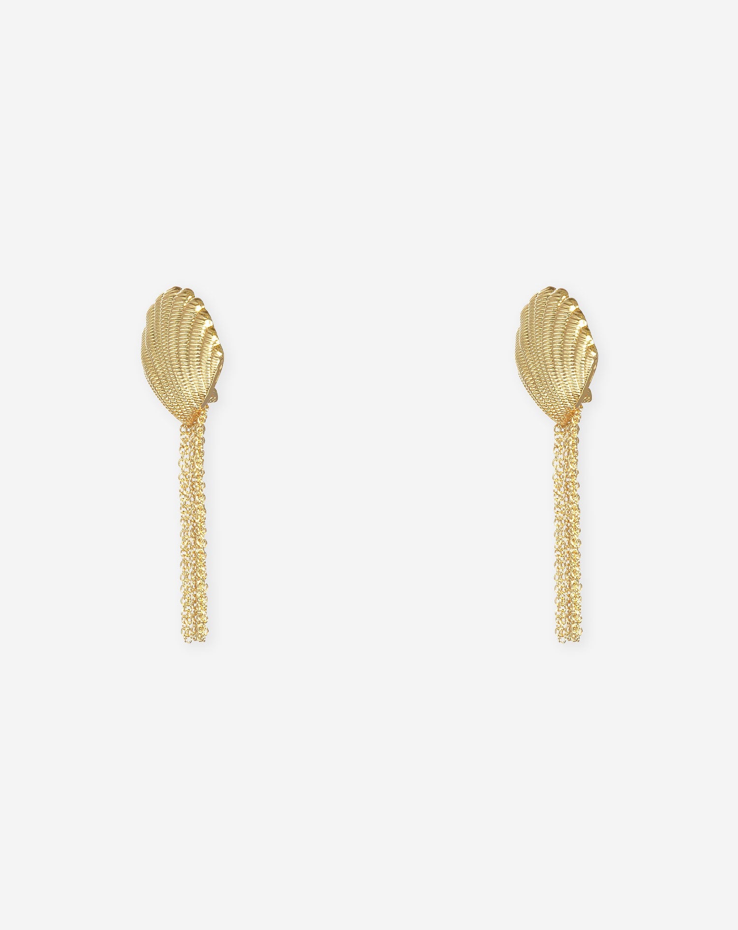 De oorbellen hebben een goudkleurige schelp aan de bovenkant. Aan de schelp hangen goudkleurige schakeltjes.