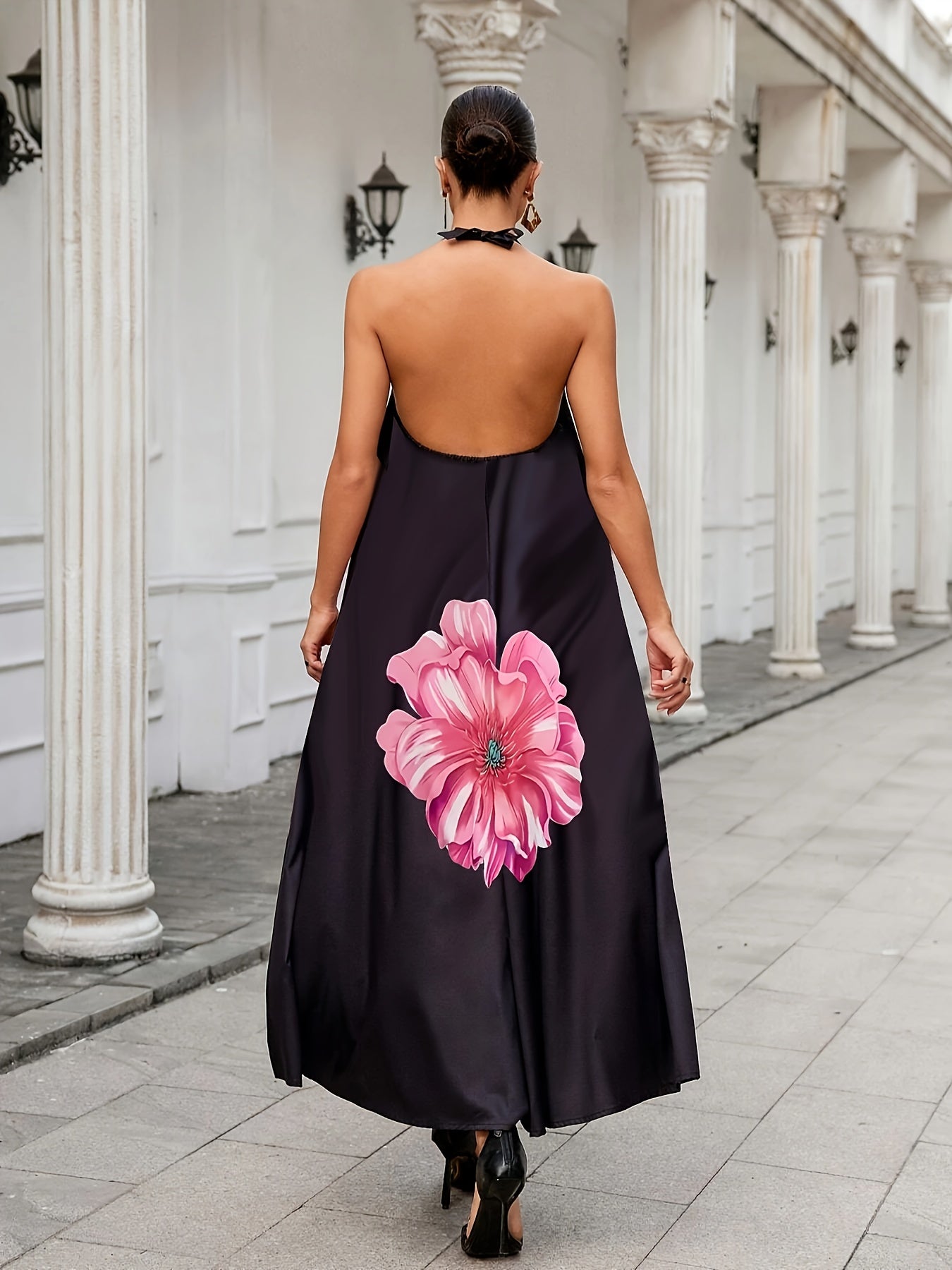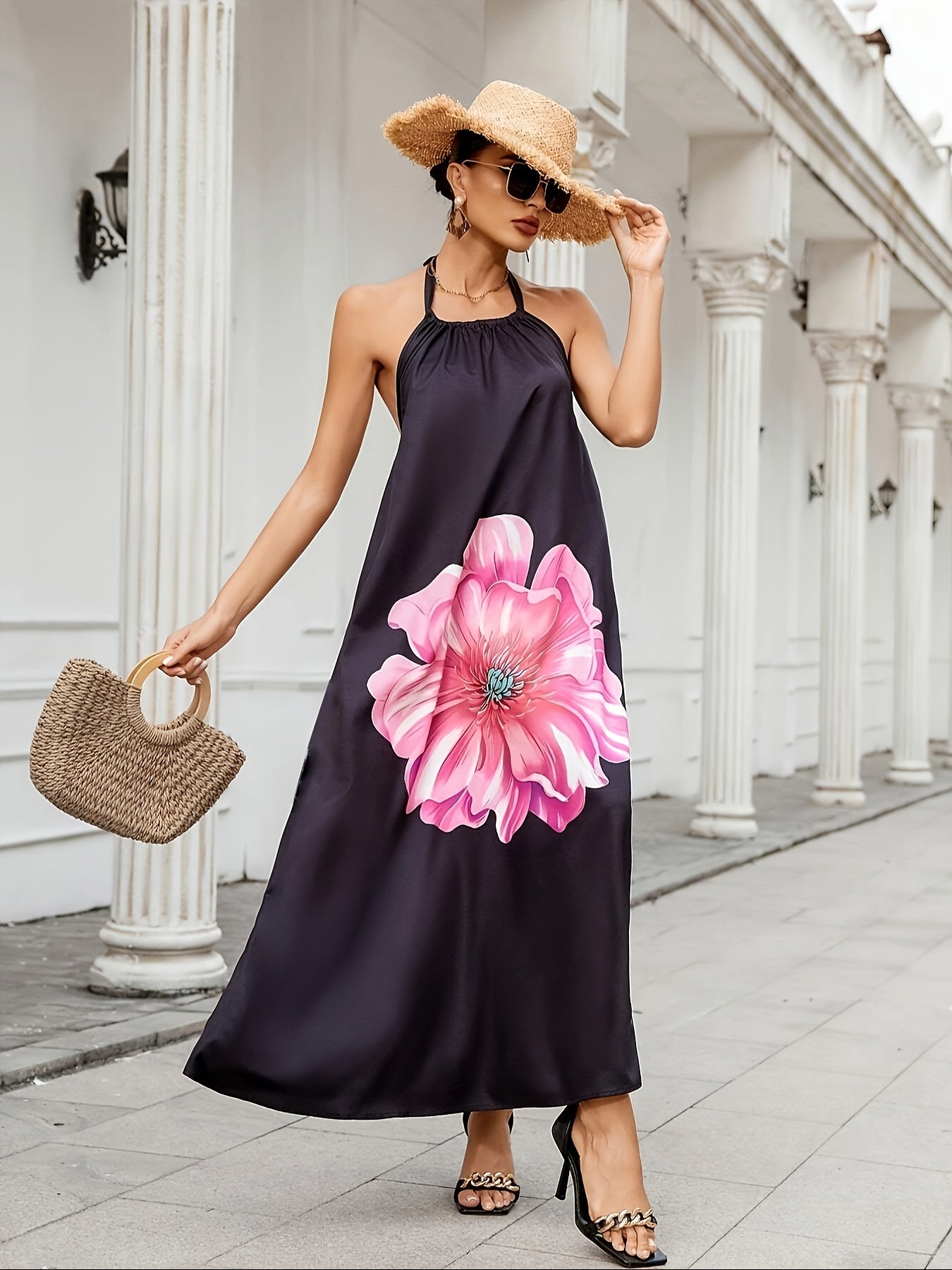 Nelly | Elegante Bloemenprint Halternek Mouwloze Maxi-Jurk