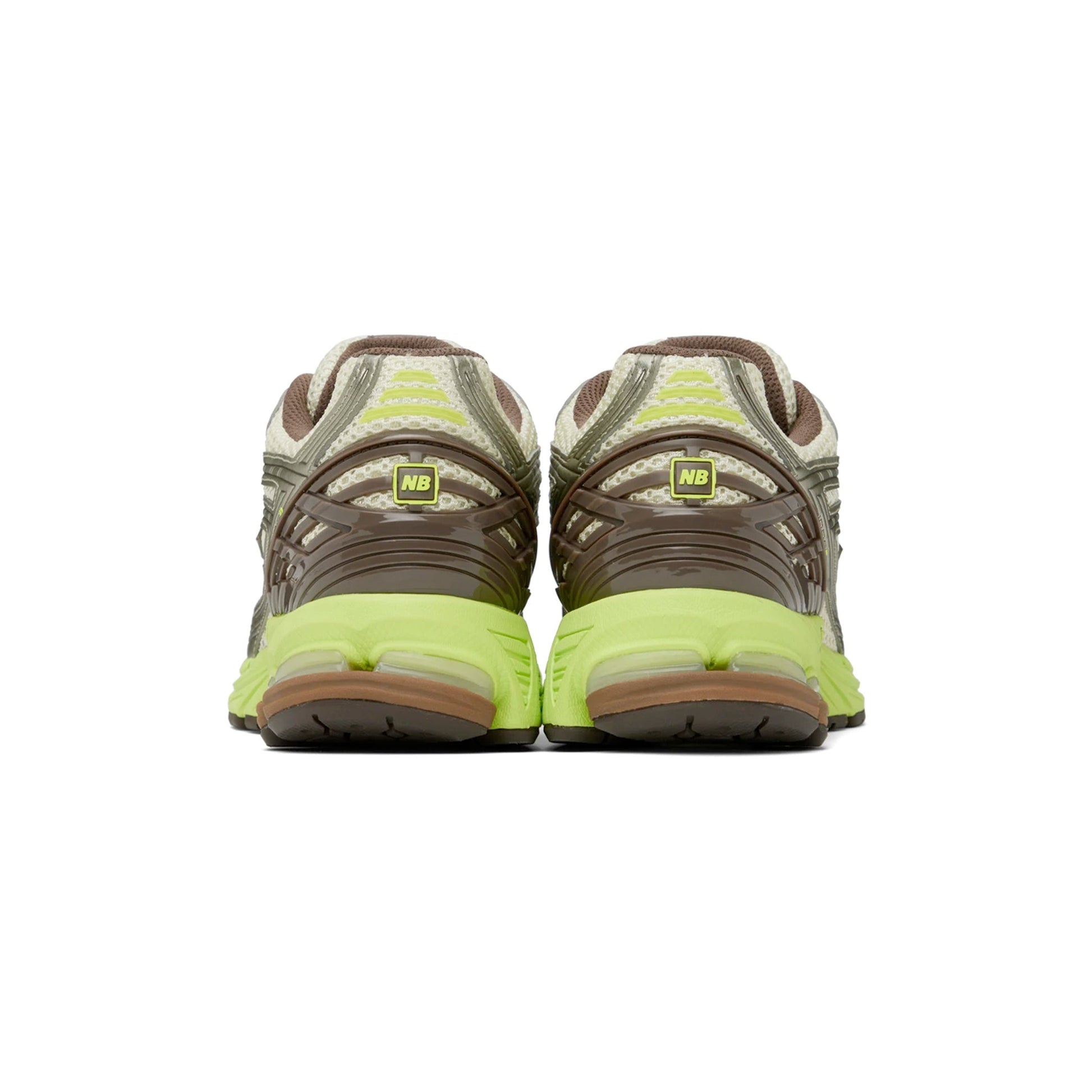 The New Balance 1906A Ssence Green/Brown is comprised of a grey mesh upper, fortified with metallic silver synthetic leather overlays. A molded cage engulfs the heel for ankle support. The ACTEVA LITE midsole gets ABZORB SBS heel pods for a plush feel, while the rubber outsole works with a Stability Web for midfoot support.
