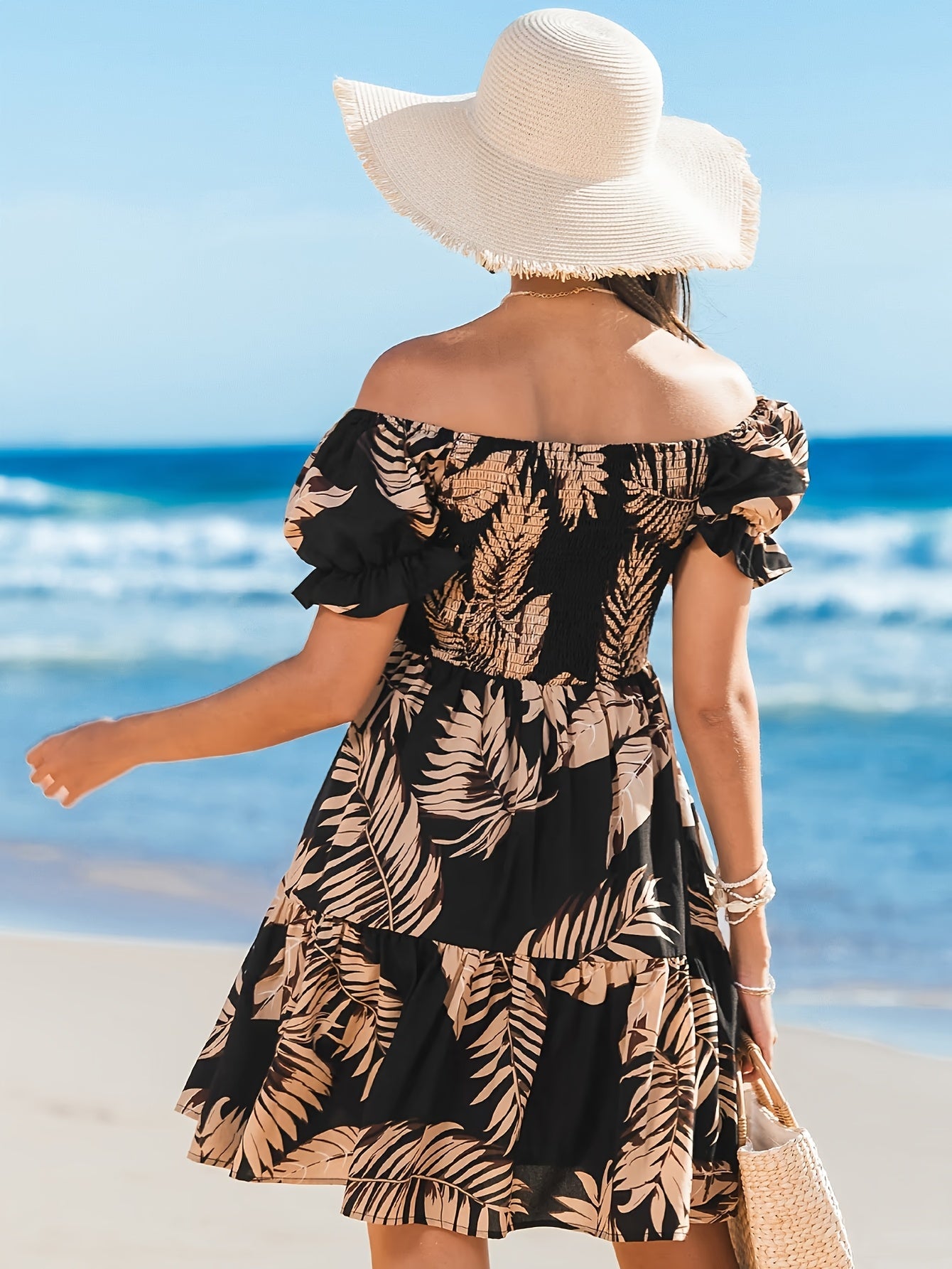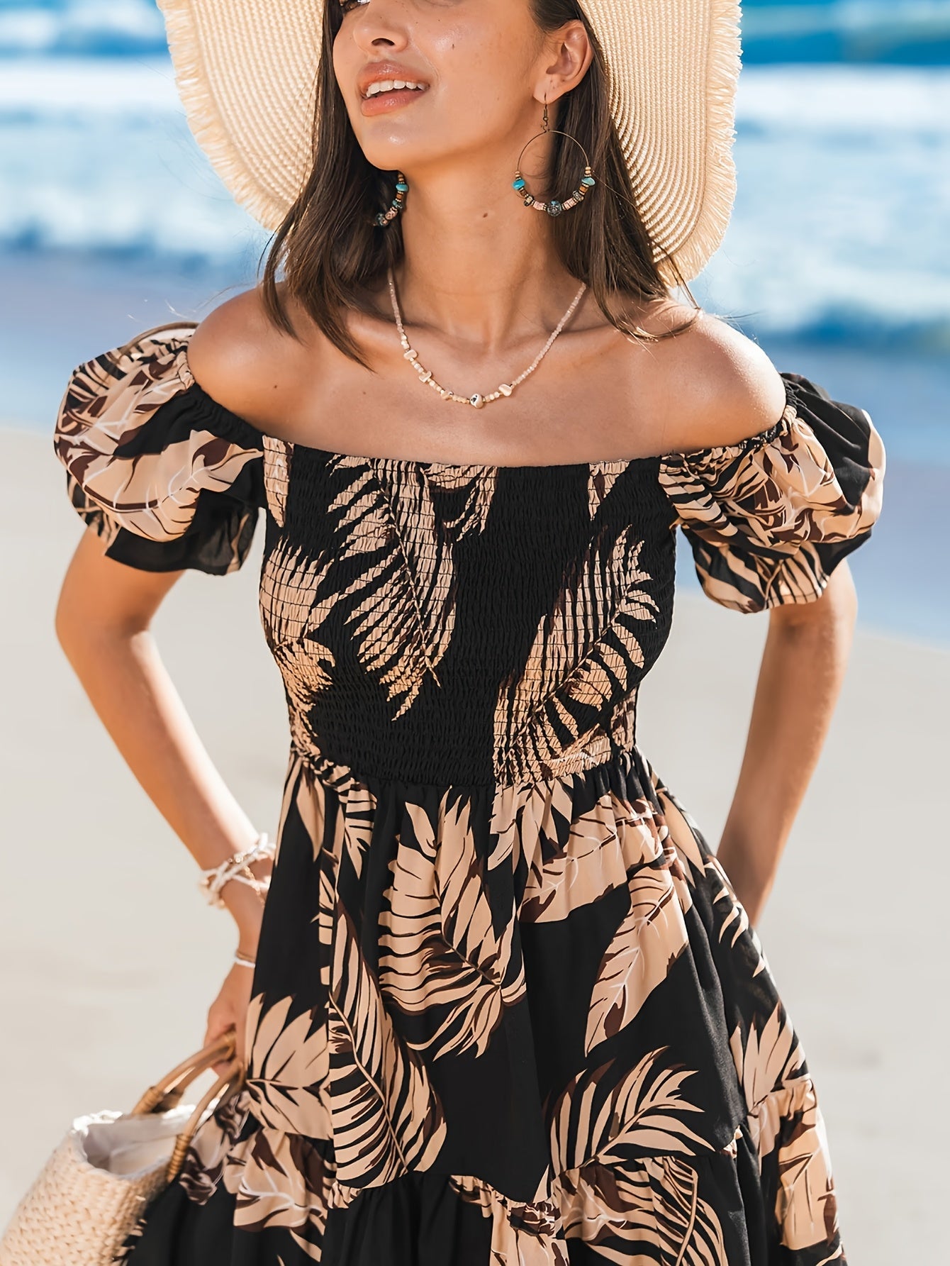 Olivia | Tropische Off-Shoulder Jurk met Gelaagde Ontwerpen