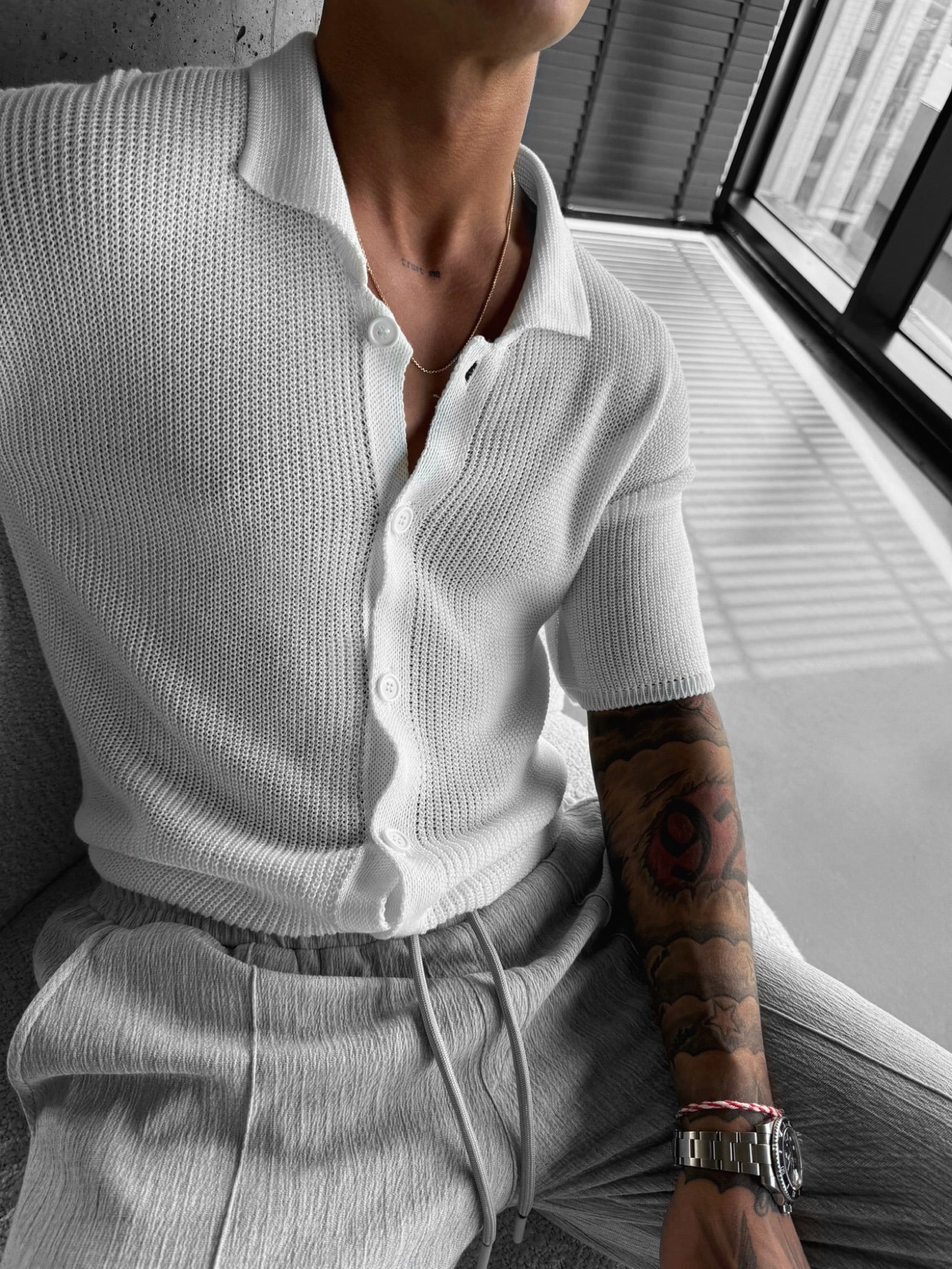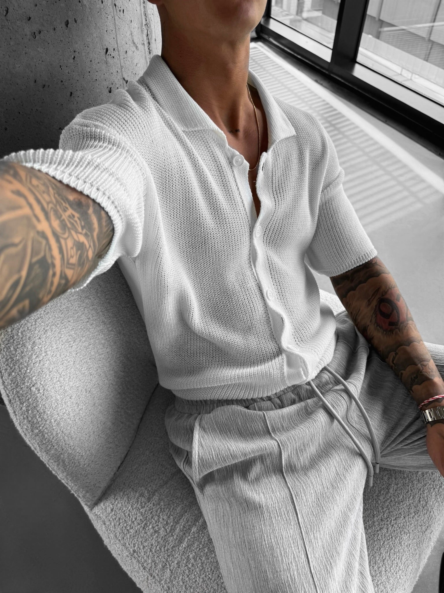 Oversize-Langstrickhemd - Weiß