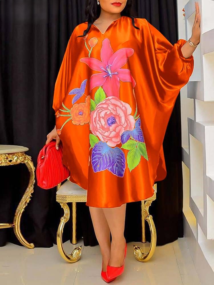 Pamela | Elegante Bohemian Midi Jurk met Bloemenprint en Batwing Mouwen