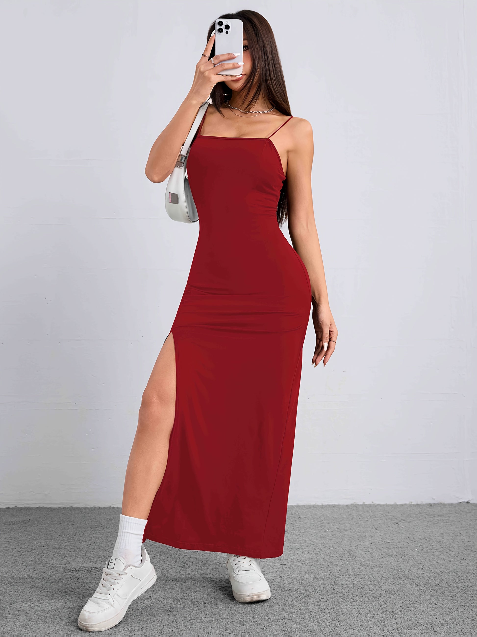 ✔ Verleidelijke Split – De hoge split aan de zijkant zorgt voor een sensuele uitstraling en geeft de jurk extra flair.