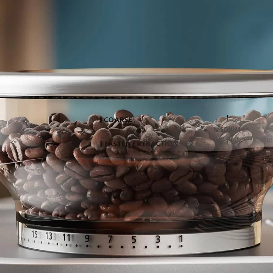 250-g-Bohnenbehälter mit Aromaverschluss: Entdecken Sie verschiedene Kaffeebohnen mit dem 250-g-Bohnenbehälter, der für die Erhaltung der Frische konzipiert ist. Das Aromasiegel sorgt dafür, dass Ihre Bohnen ihr reiches Aroma behalten und jeder Aufguss so frisch und aromatisch ist wie der erste.