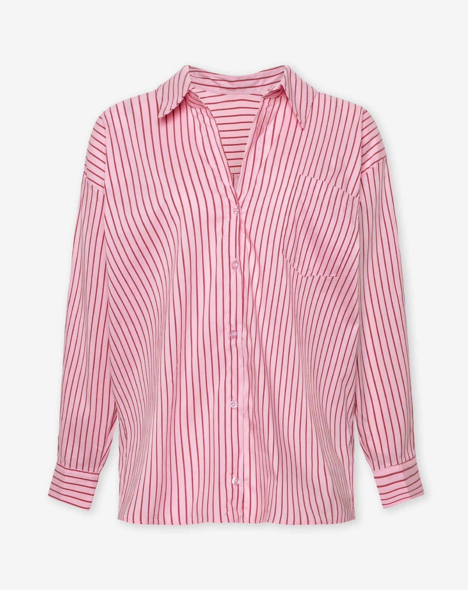 POPLIN STRIPE OVERSIZED BLOUSE ROZE