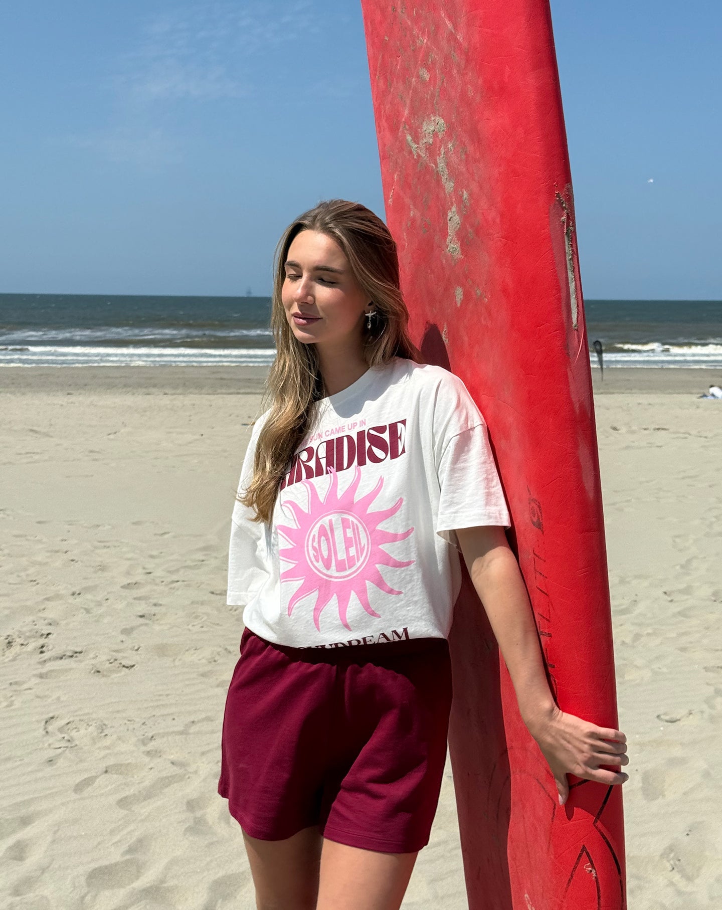 De short heeft een elastieken band rond het middel en is de perfecte match met de Cropped Sweat Tee.