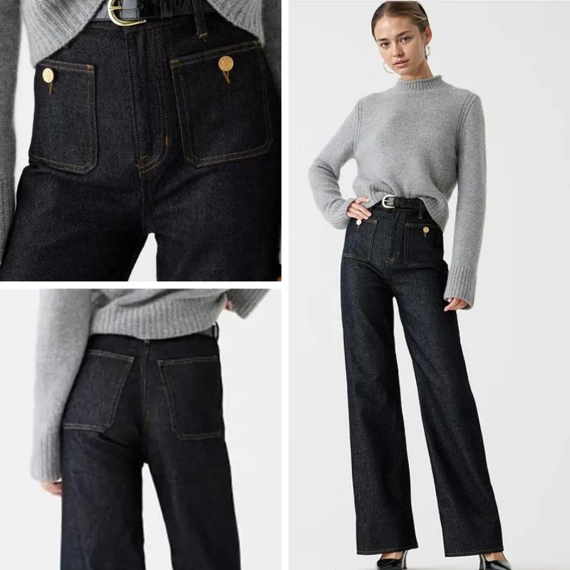 De stevige maar soepele denimstof zorgt voor een perfecte fit die je figuur flatteert, terwijl de hoog uitgesneden taille je silhouet verlengt. De grote voor- en achterzakken geven de broek een moderne twist met een vleugje utilitaire charme.