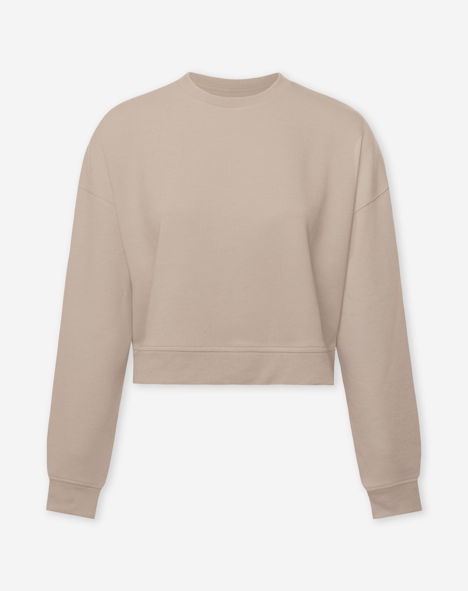 De sweater is gemaakt van een mooie, scuba stof. De sweater heeft een ronde hals en heeft een cropped fit. Combineer de sweater met de bijpassende broek voor een comfy fall look.