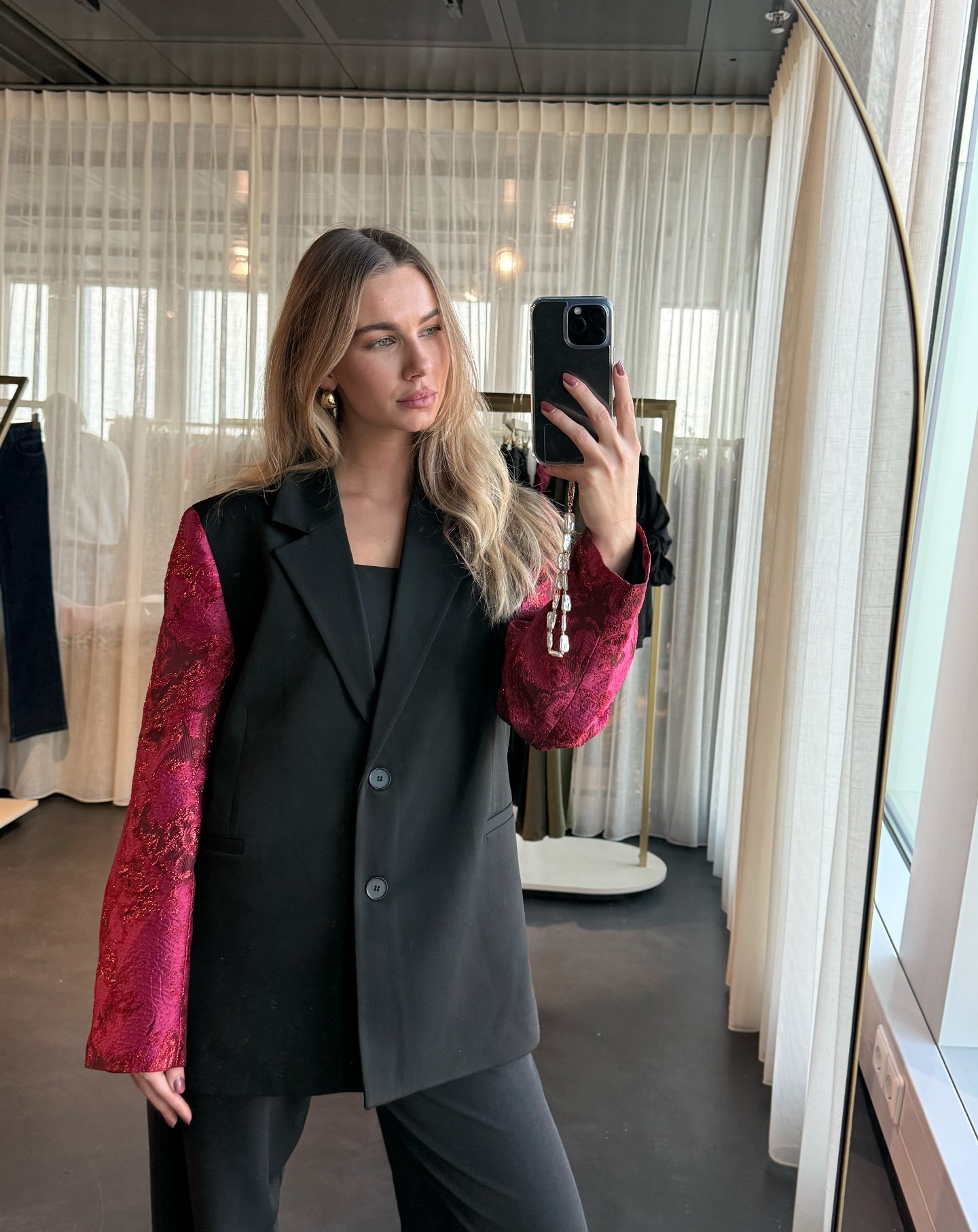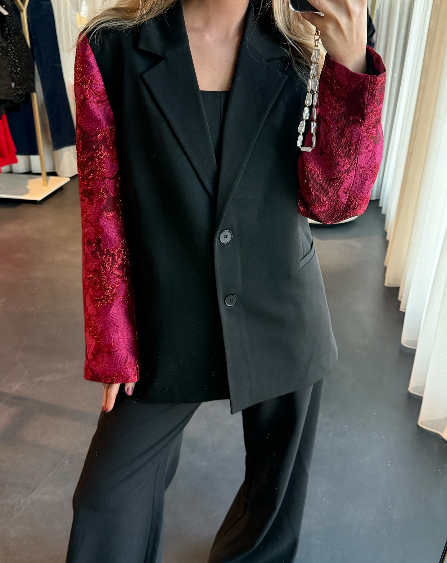 SENNA JACQUARD SLEEVE BLAZER BORDEAUX