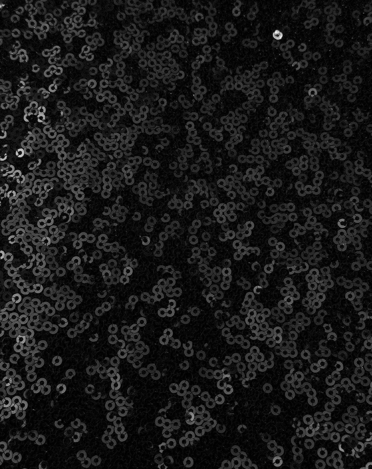 De broek is gemaakt van een zwarte stof en heeft zwarte pailletten all over. De broek is gevoerd en heeft een elastieken band rond het middel. De broek heeft een straight leg model.