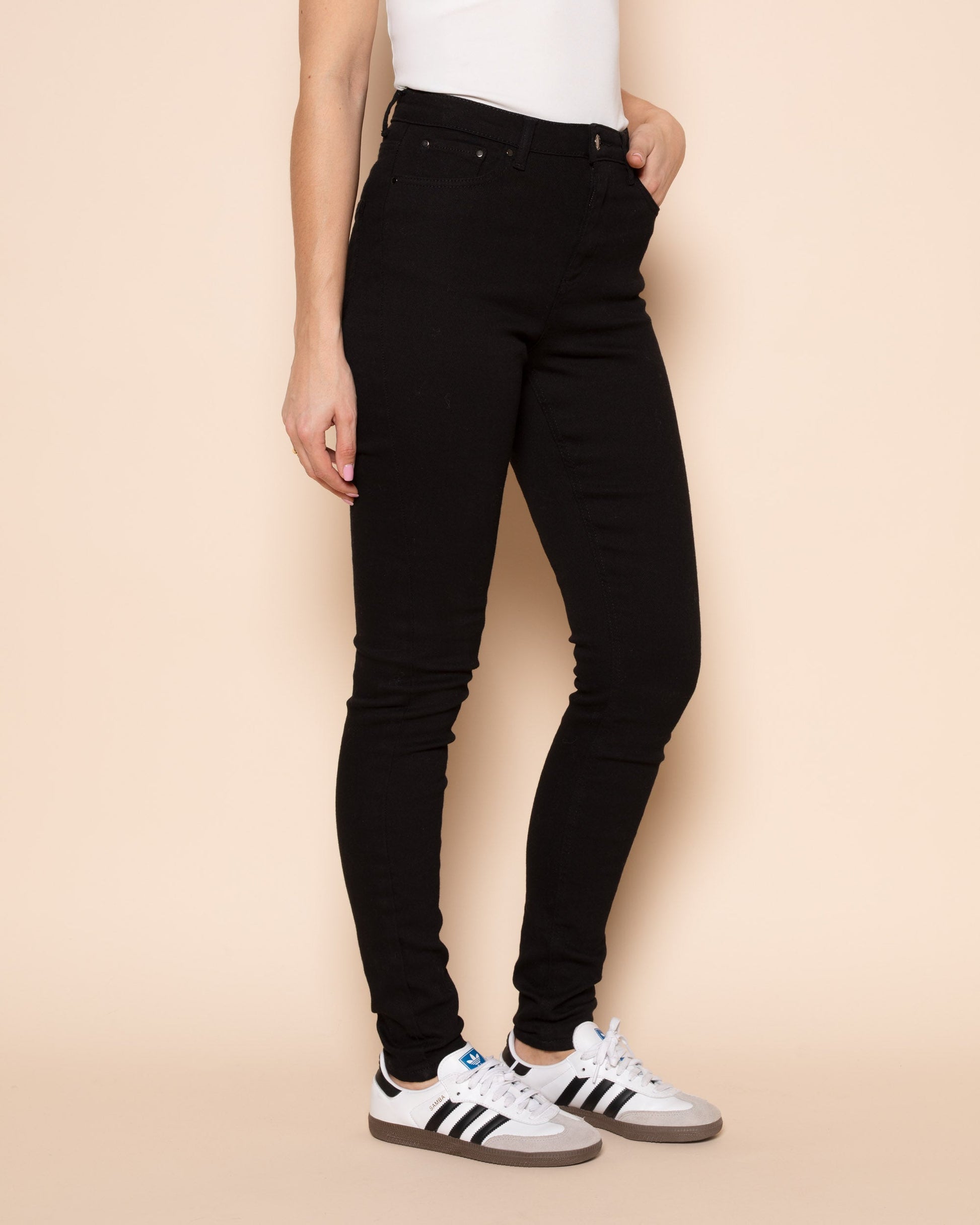 Skinny jeans zijn weer helemaal terug van weg geweest! De broek is gemaakt van een zwarte denim stof. De broek bevat stretch waardoor deze mooi aansluit. De broek heeft zakken aan de voor- en achterkant.