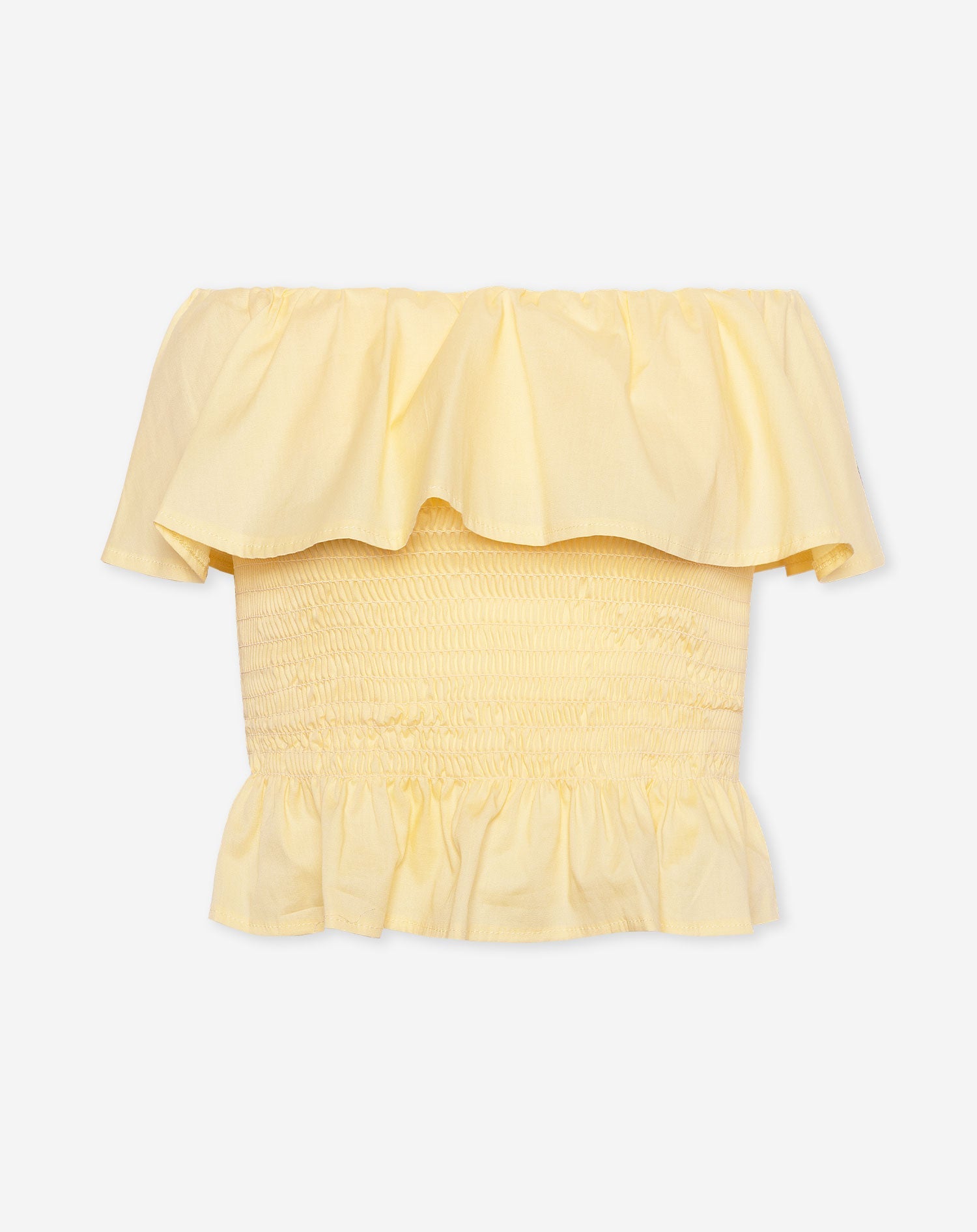 STRAPLESS RUFFLE SMOCK TOP BOTERGEEL