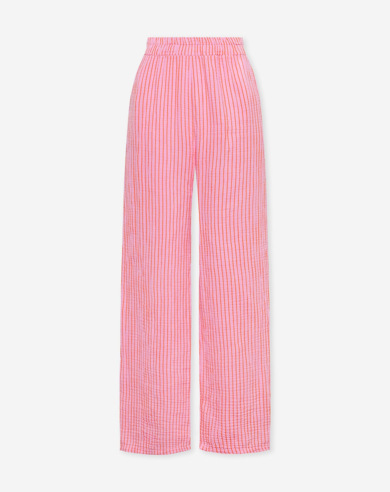STRIPE MOUSSELINE STRAIGHT LEG PANTS ROZE