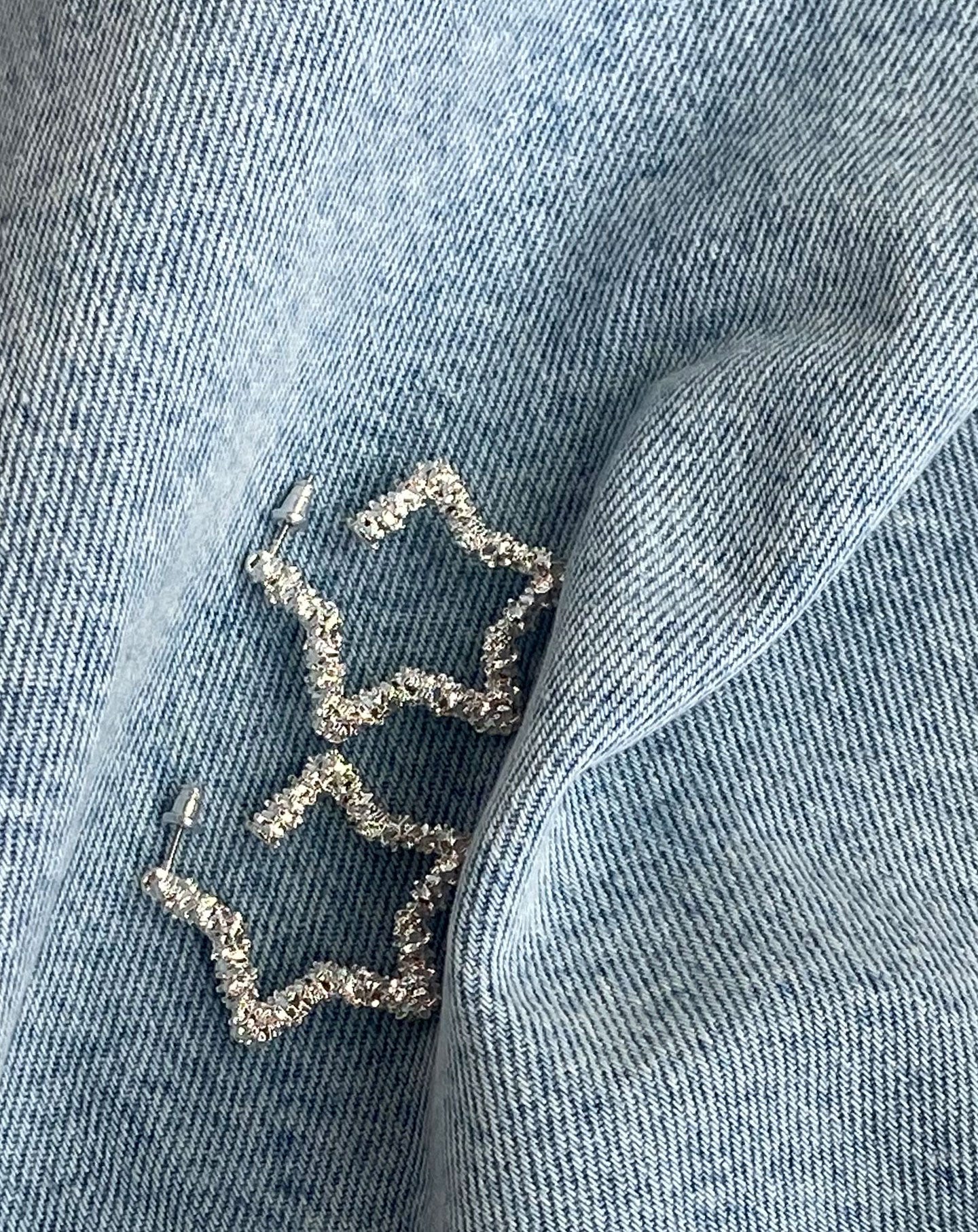 De oorbellen hebben een sterren vorm en hebben een glimmende structuur. Combineer de oorbellen met jouw favoriete outfit & you're all set.