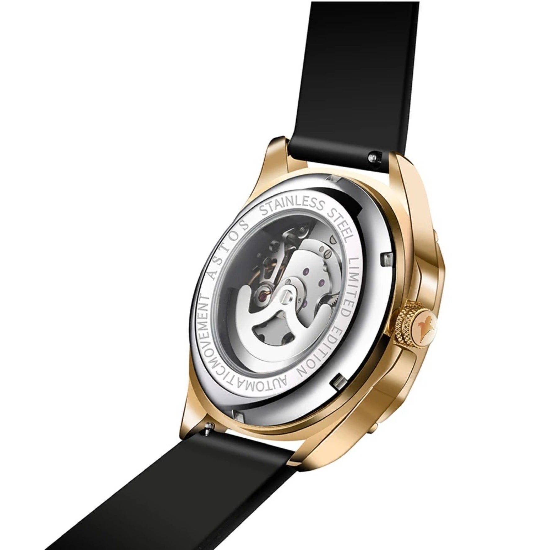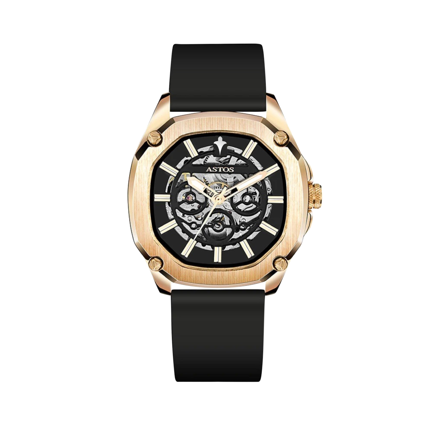 Maak kennis met de ASTOS Styx Ultimate, een horloge dat de essentie van tijdloosheid belichaamt met een gewaagd randje. Dit meesterwerk is ontworpen voor de avontuurlijke ziel, met een ontwerp dat de robuustheid van de mythische stromingen van de Styx combineert met de allernieuwste technologie. De slanke, donkere afwerking staat in contrast met hints van helderheid en biedt een kijkje in het ingewikkelde vakmanschap van het horloge. De ASTOS Styx Ultimate is niet alleen een tijdwaarnemer; het is een statement-stuk voor degenen die door de onbekende wateren van stijl en innovatie durven te navigeren.