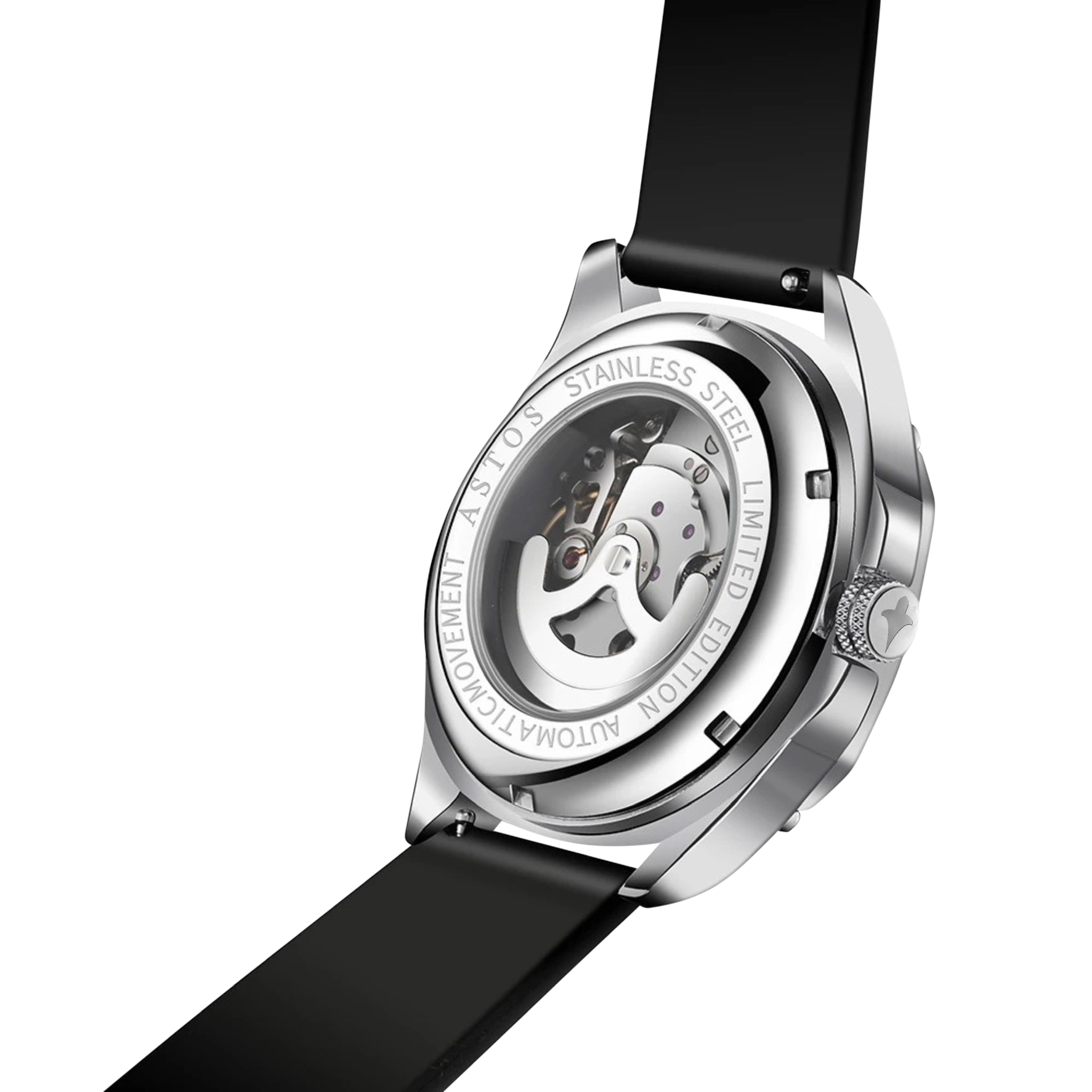 Maak kennis met de ASTOS Styx Ultimate, een horloge dat de essentie van tijdloosheid belichaamt met een gewaagd randje. Dit meesterwerk is ontworpen voor de avontuurlijke ziel, met een ontwerp dat de robuustheid van de mythische stromingen van de Styx combineert met geavanceerde technologie. De slanke, donkere afwerking staat in contrast met hints van helderheid en biedt een kijkje in het ingewikkelde vakmanschap van het horloge. De ASTOS Styx Ultimate is niet alleen een tijdwaarnemer; het is een statement-stuk voor degenen die door de onbekende wateren van stijl en innovatie durven te navigeren.