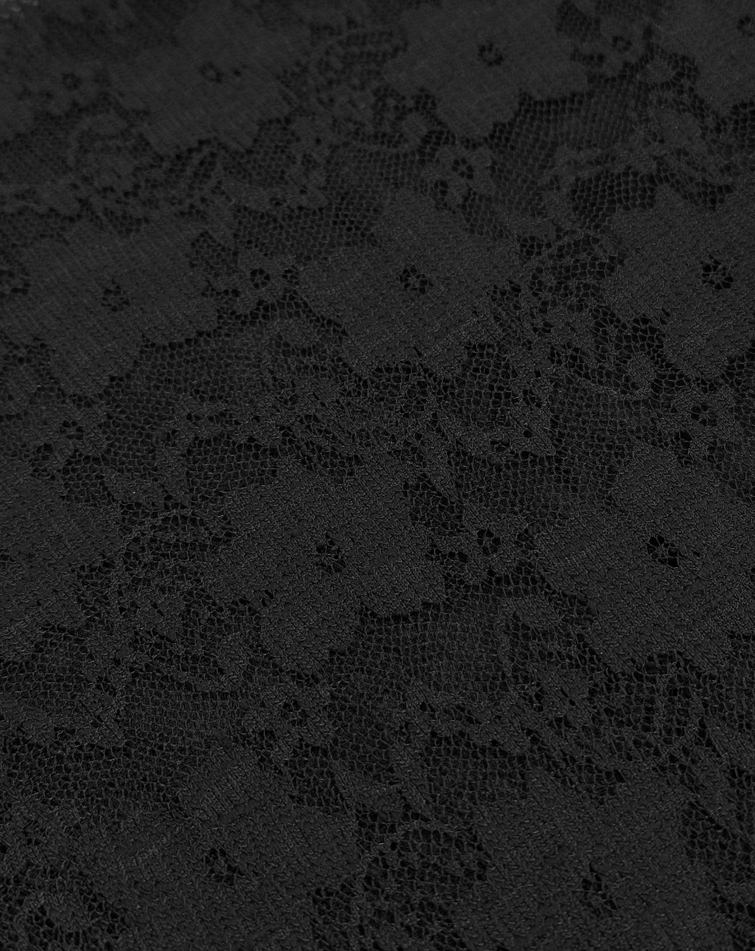 De tee is gemaakt van een acid grijze stof. De tee heeft zwarte, kanten mouwen waardoor deze een unieke look heeft. De tee heeft een roze met rode opdruk aan de voorkant.
