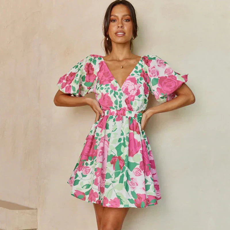 Waarom kiezen voor de Sylvia - V-Hals Bloemenprint Mini Jurk?