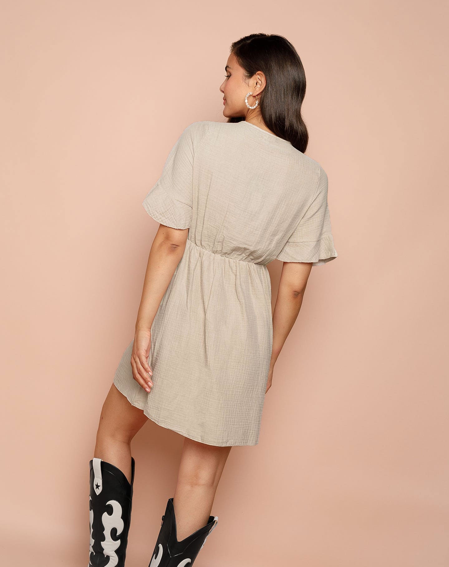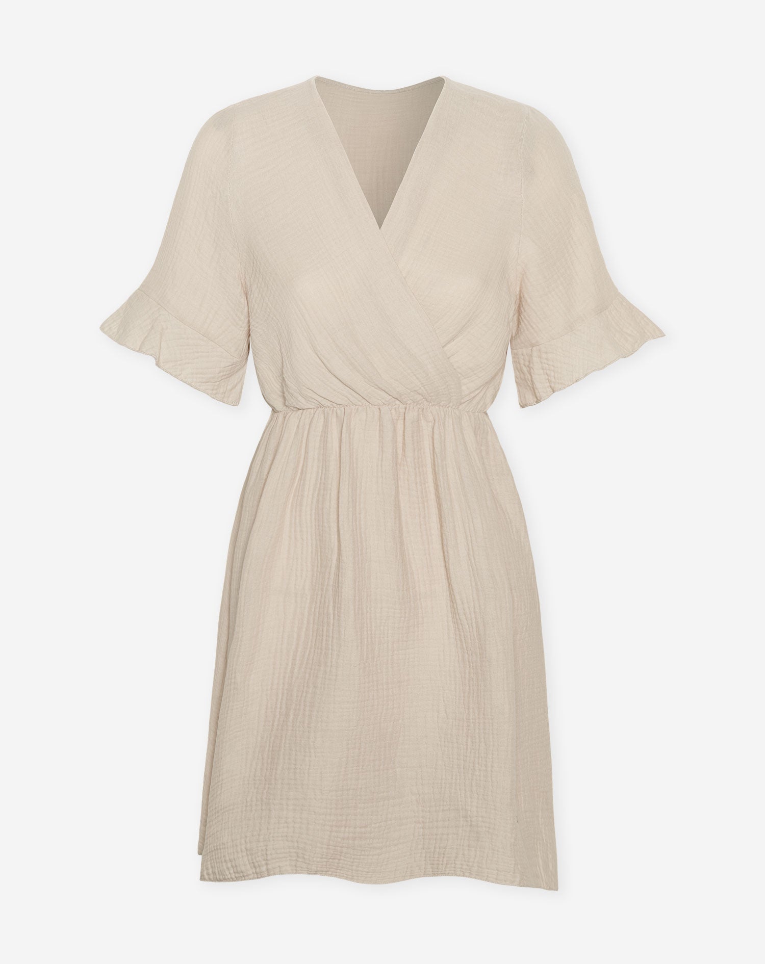 Deze super leuke jurk is perfect voor de warmere dagen! Het jurkje is gemaakt van mousseline, heeft een v-hals en heeft cute ruffles bij de mouwen. Het jurkje heeft een elastieken band rond het middel waardoor deze mooi aansluit.