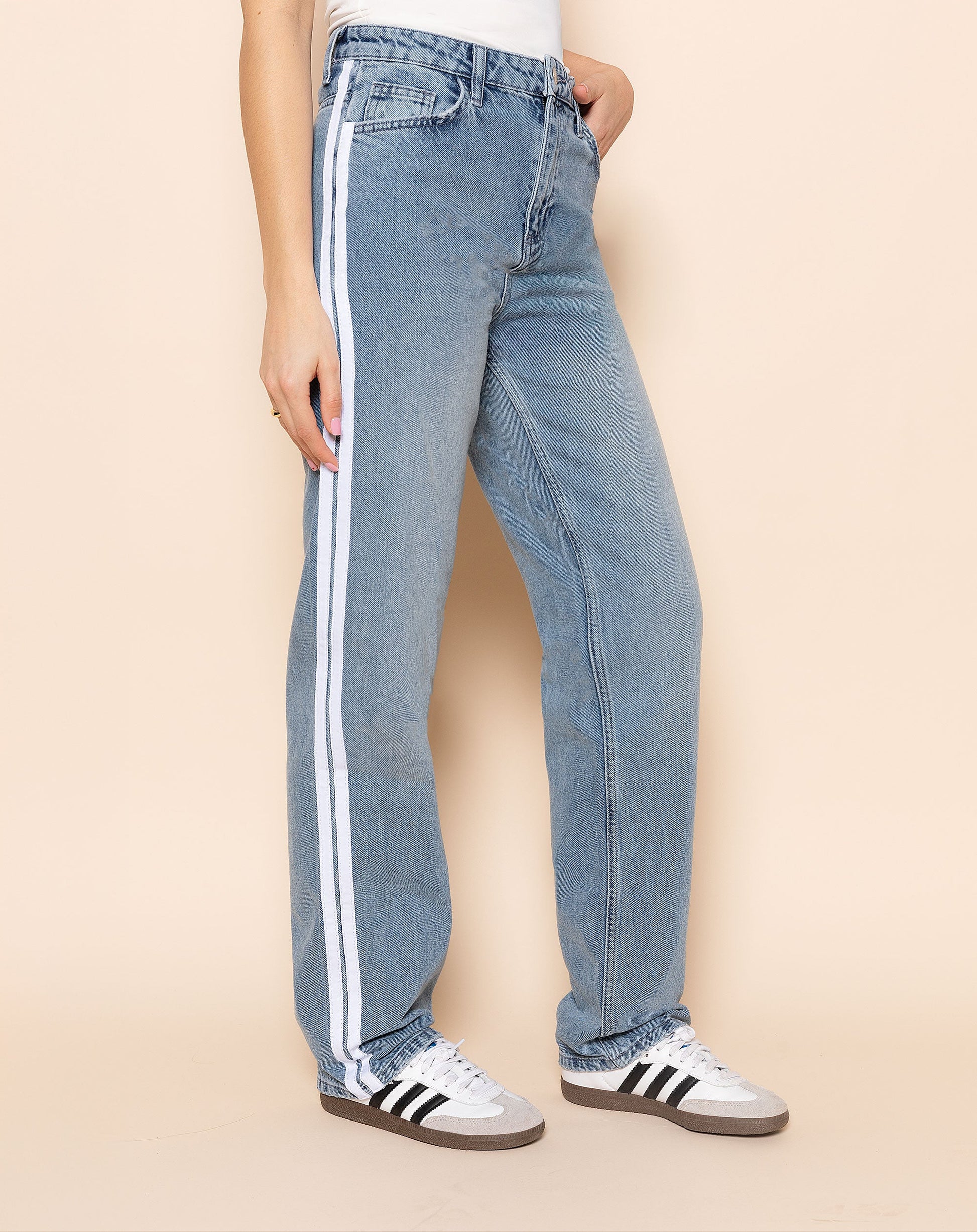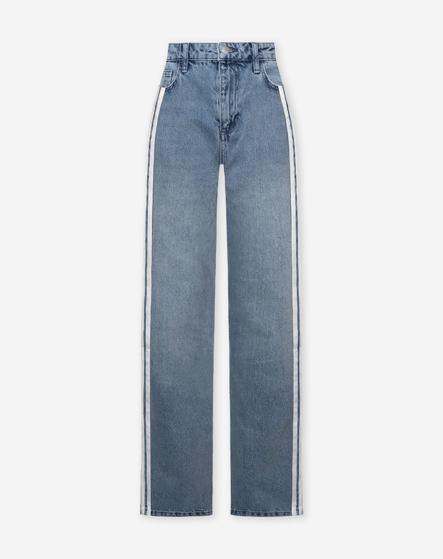 TAPE DENIM STRAIGHT LEG JEANS BLAUW