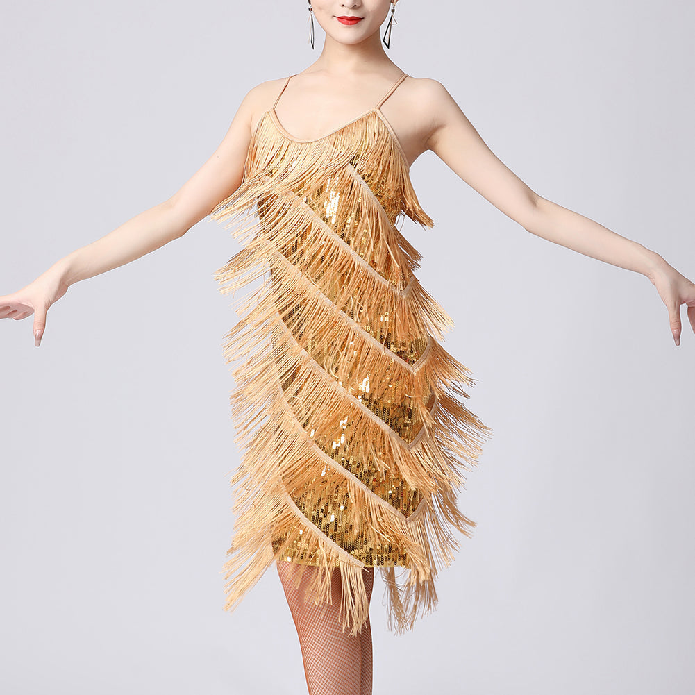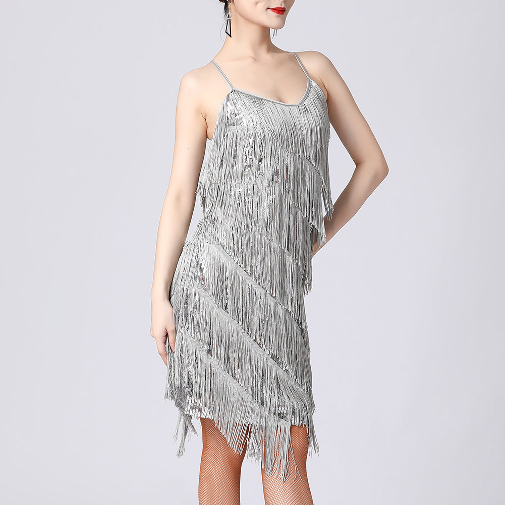Ervaar een sprankelend moment op elke dansvloer met deze prachtige fringed jurk!
