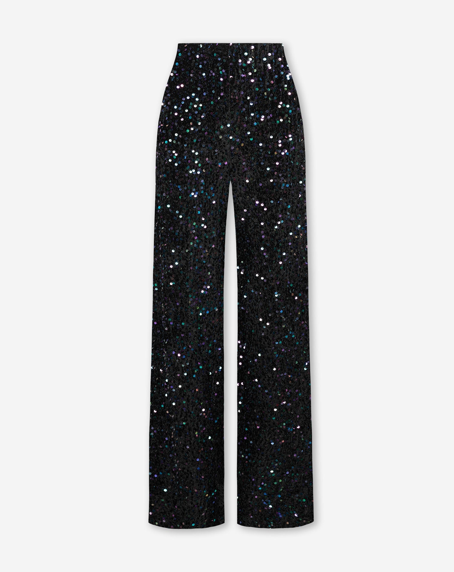 VELVET SEQUIN WIDE LEG PANTS MULTI