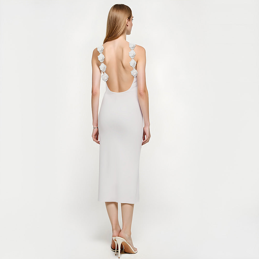 Violet | Elegante Open Rug Midi Jurk met Bloemdetails