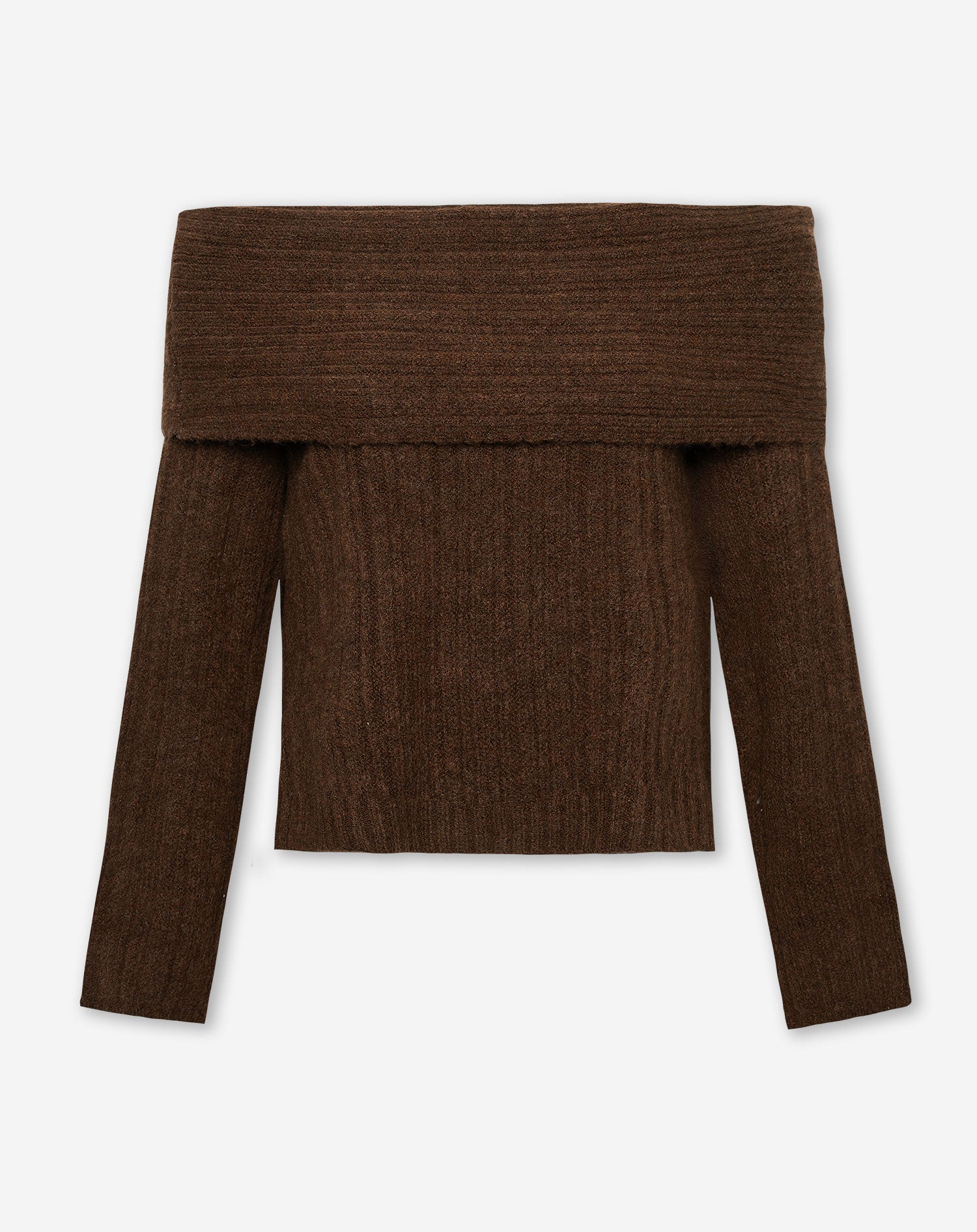 De knit is gemaakt van een zachte, comfortabele stof. De knit heeft een off shoulder model en de knit is stretchy.
