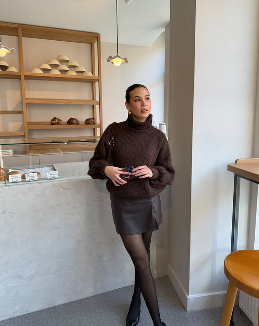 LINA FAUX LEATHER SKORT BRUIN