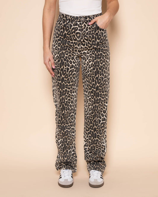 LEOPARD ALLOVER JEANS GRIJS