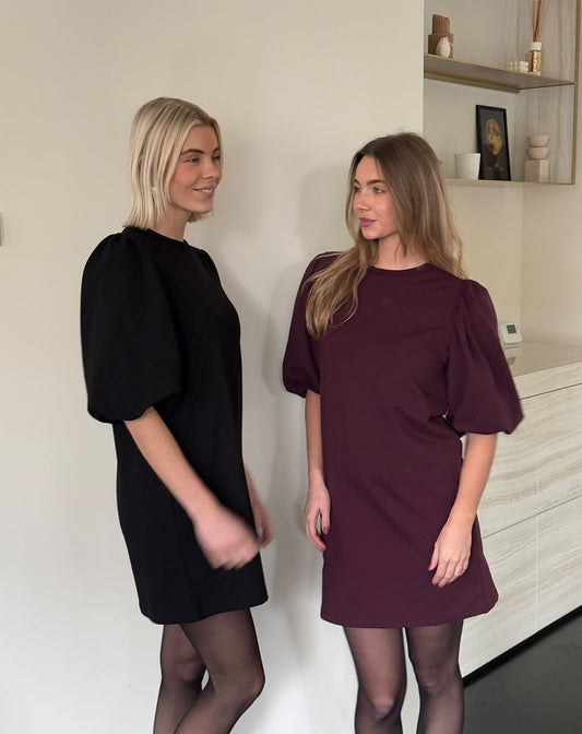 LOA PUFF SLEEVE SWEAT DRESS ZWART