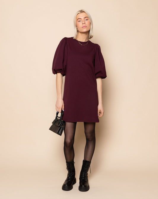 LOA PUFF SLEEVE SWEAT DRESS DONKER BURGUNDY