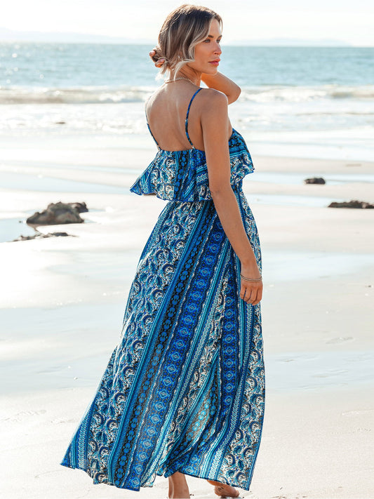 Maya | Bohemian Maxi Jurk met Paisley Print en Ruches