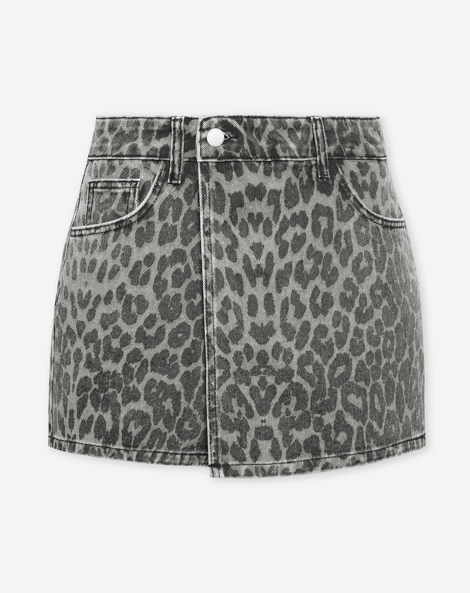 LEOPARD ALLOVER DENIM SKORT GRIJS
