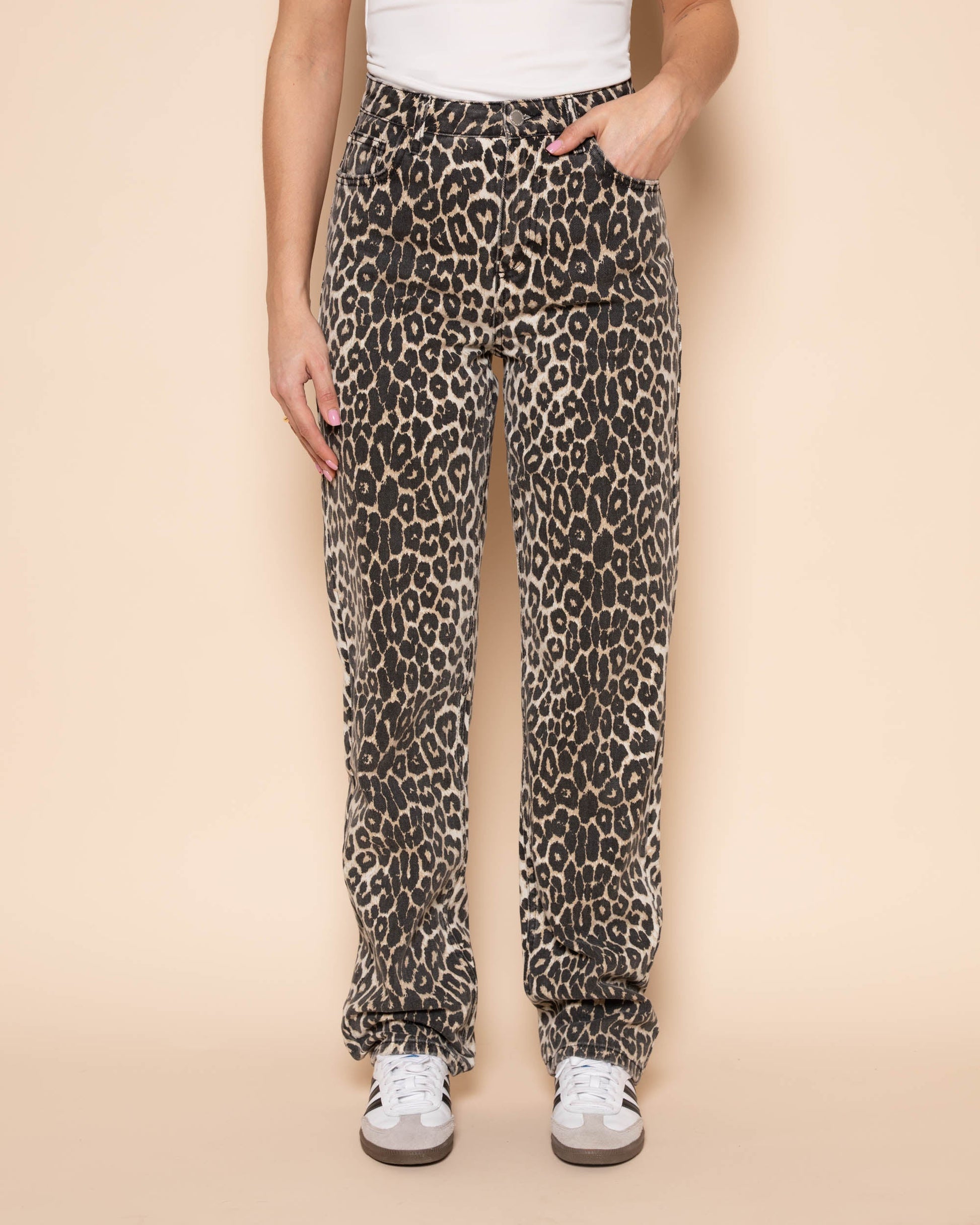 LEOPARD ALLOVER JEANS BEIGE