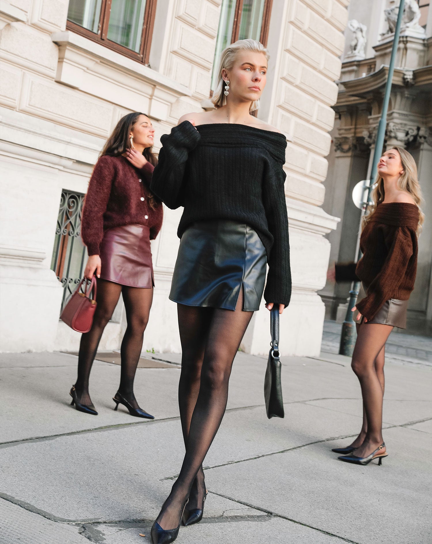 De skort is gemaakt van een zwarte, PU stof. De skort heeft een ritssluiting aan de achterkant en de skort heeft een split aan de voorkant. Combineer de skort met de bijpassende blazer voor een trendy fall look.