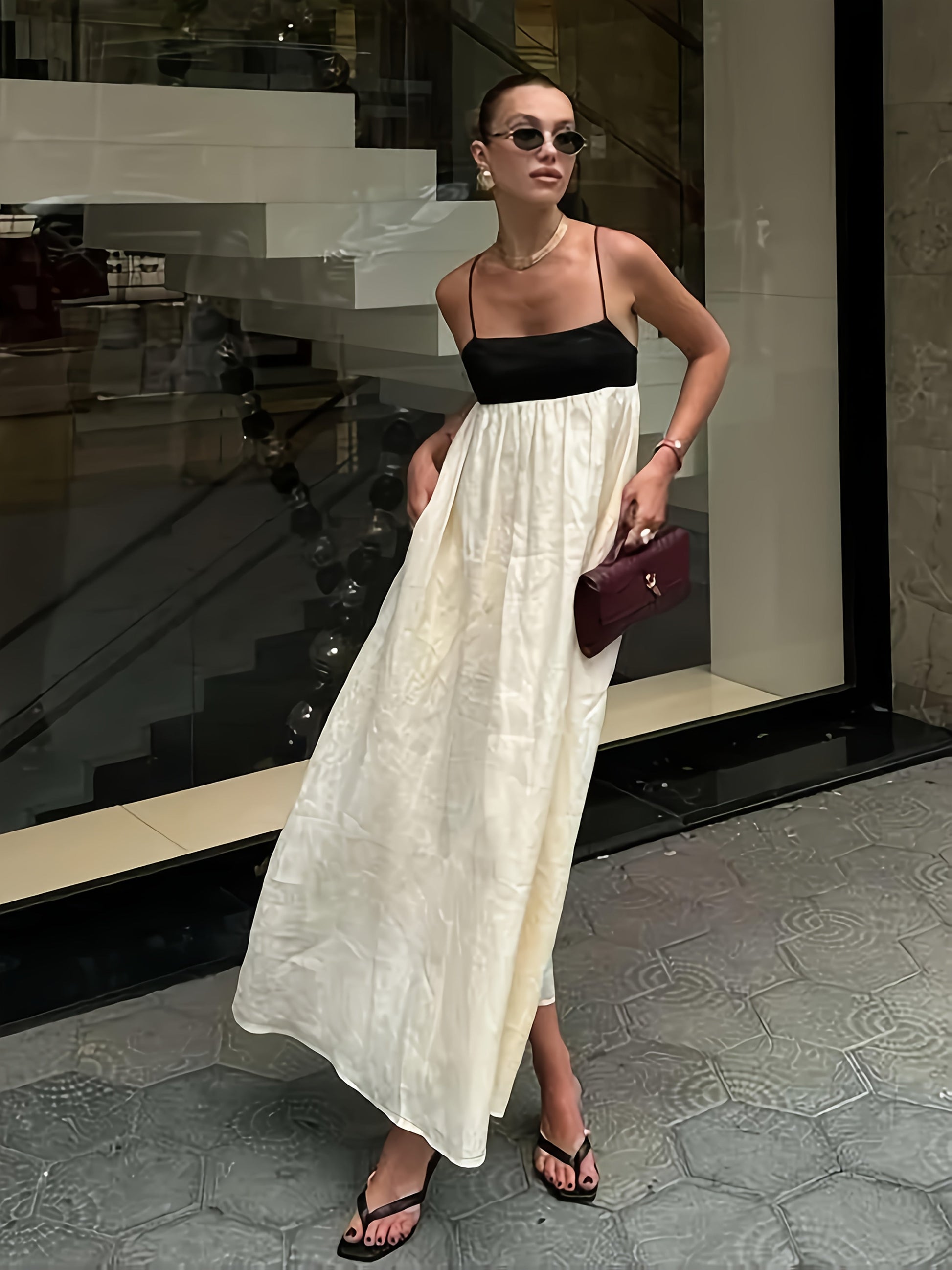 Lucy | Elegante Zomerjurk met Kleurblok en Spaghettibandjes