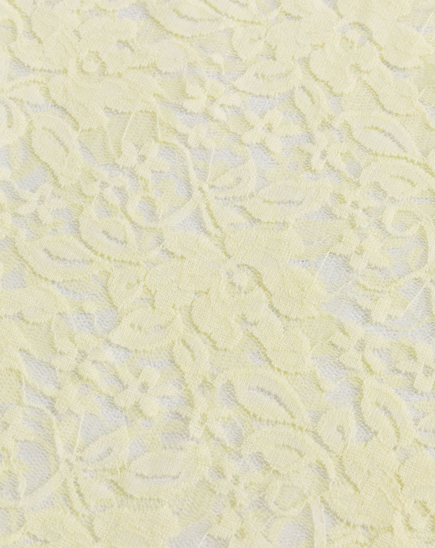 De top is gemaakt van een gele kanten stof. De top heeft een col en bevat stretch waardoor deze mooi aansluit.