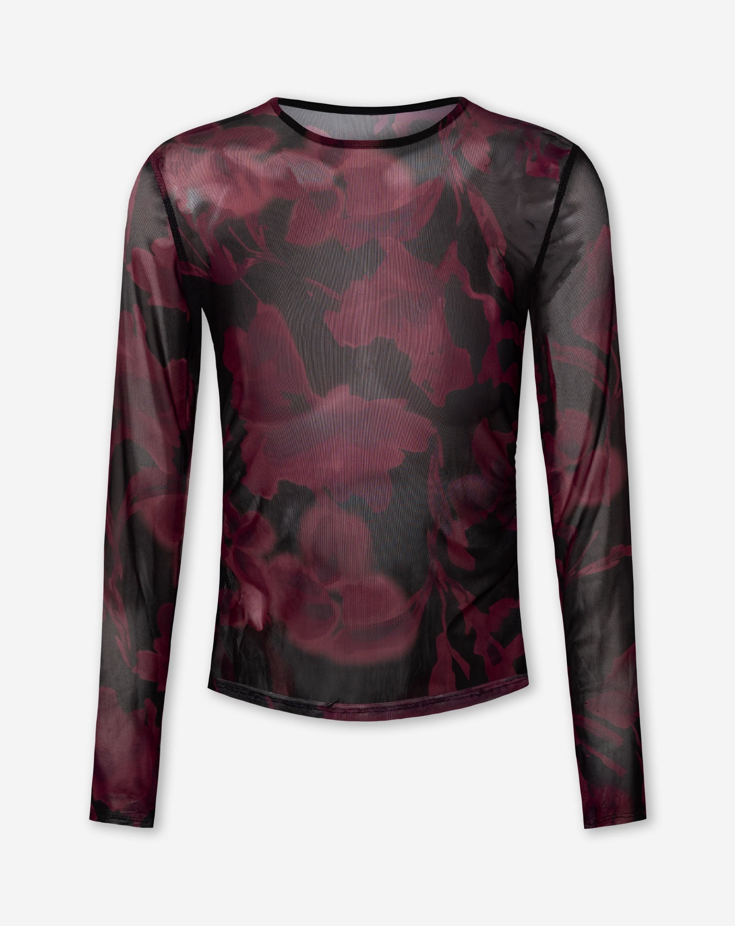 MARA PRINTED MESH TOP BURGUNDY