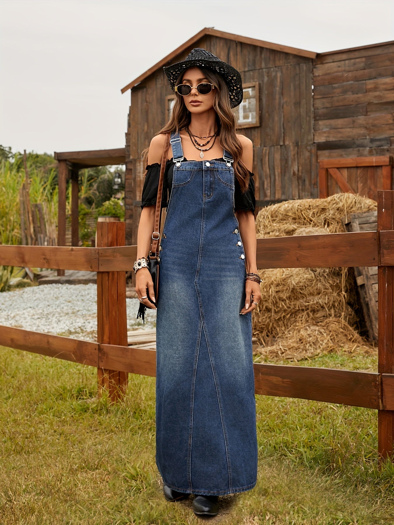 Laat je charmes stralen met deze stijlvolle denim maxi jurk met een vrouwelijke flair!